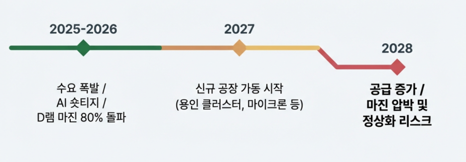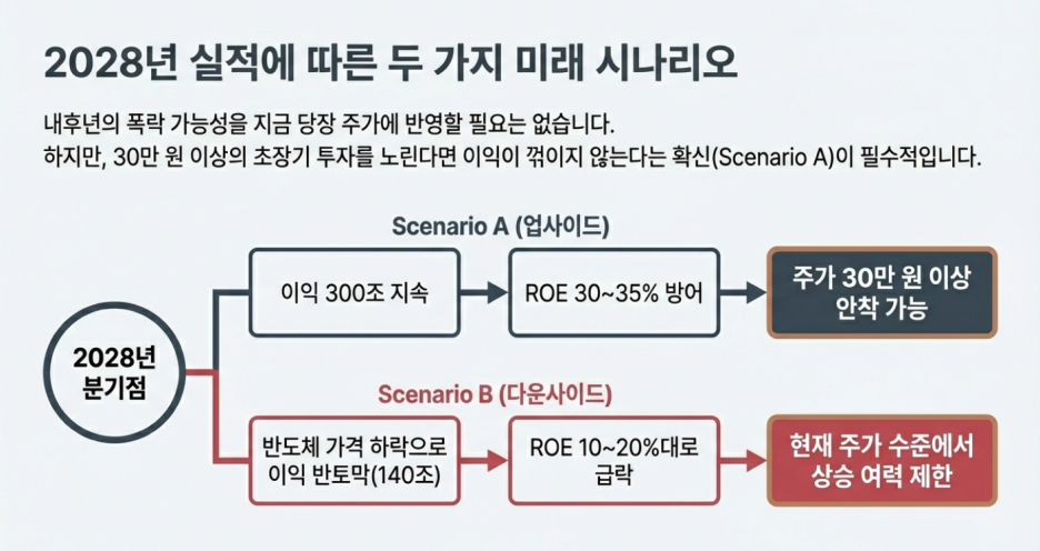 ➡️30만 원 이상에서 진입하는 건 "2028년에도 꺾이지 않을 것"이라는 극도의 낙관에 베팅하는 셈.