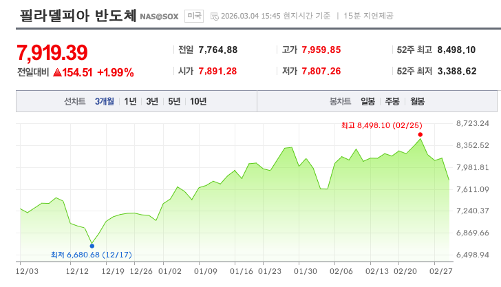 📈필라델피아반도체지수 : 1.99% 😍