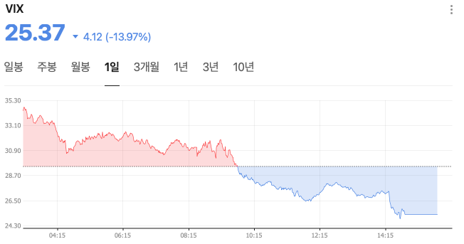 ✅VIX지수 : 25.37 (패닉 발생 : 기회가 생기는 구간)