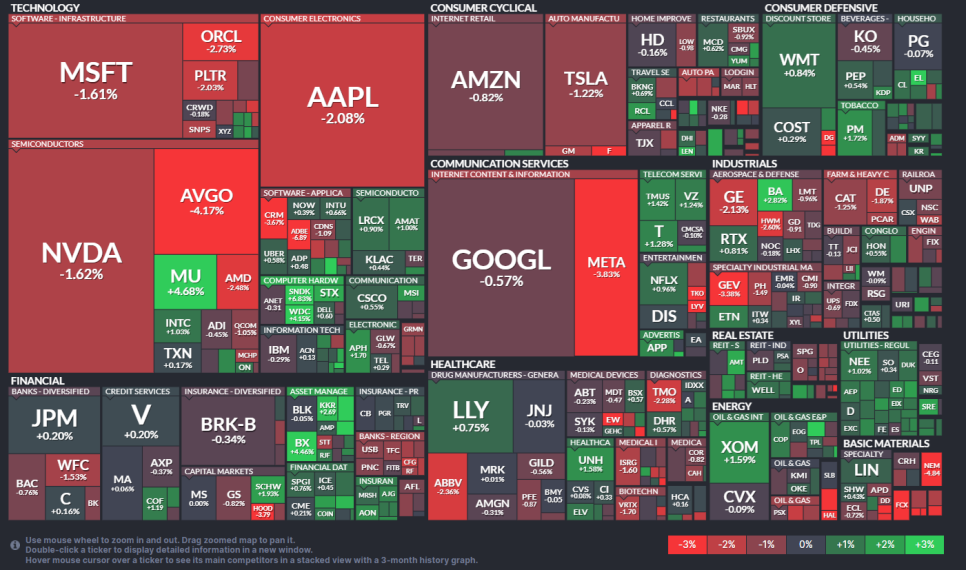 ✅ 엔비디아(-0.67%)와 브로드컴(-2.91%) 등 대형 칩 제조사들이 전반적으로 약세.