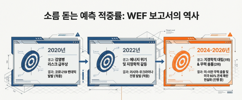 🔶다보스 세계경제포럼의 '글로벌 리스크 보고서 2026'이 주목받는 이유는 압도적인 적중률 때문.