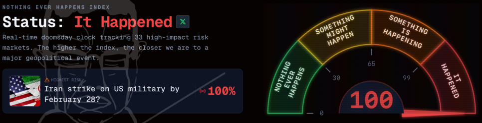 Nothing Ever Happens Index : 100/100 (100점에 가까울수록 지정학적 위기고조)