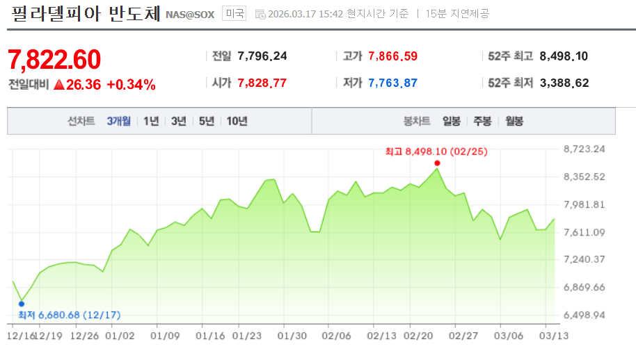 📈필라델피아반도체지수 : 0.34% 😍