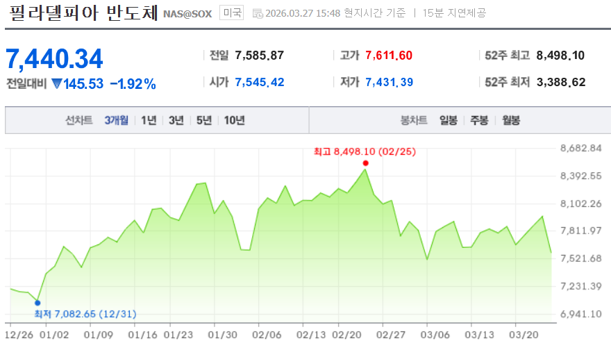 📉필라델피아반도체지수 : -1.92%😠