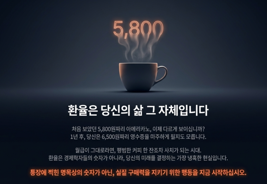 "환율은 외국인 투자자들이 매기는 한국 경제의 신뢰 점수이자, 내 노동 가치를 측정하는 가장 냉혹한 잣대입니다."