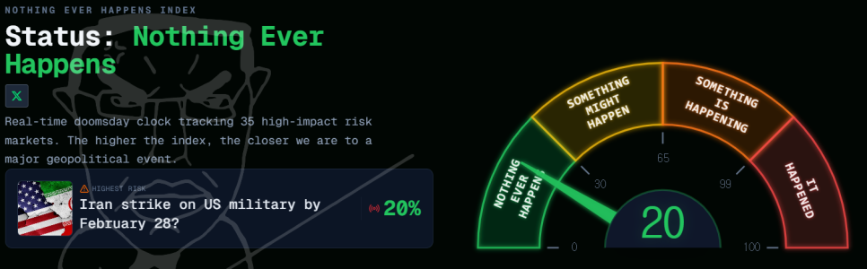Nothing Ever Happens Index : 20/100 (100점에 가까울수록 지정학적 위기고조)