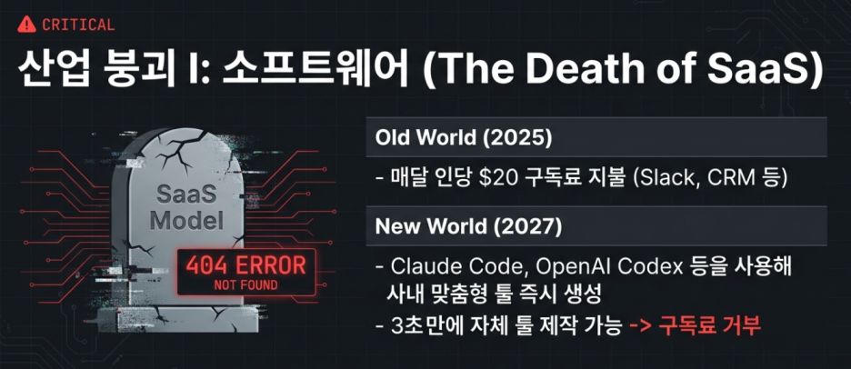 기존 소프트웨어(SaaS) 기업들이 AI 기반 자체 툴에 밀려 매출이 꺾이면,