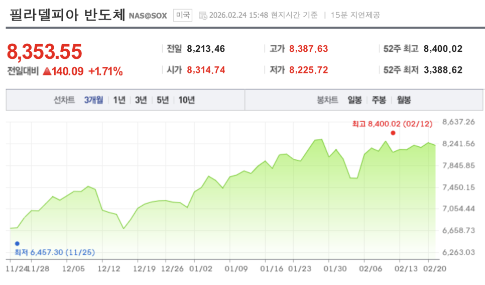 📈필라델피아반도체지수 : 1.71% 😍